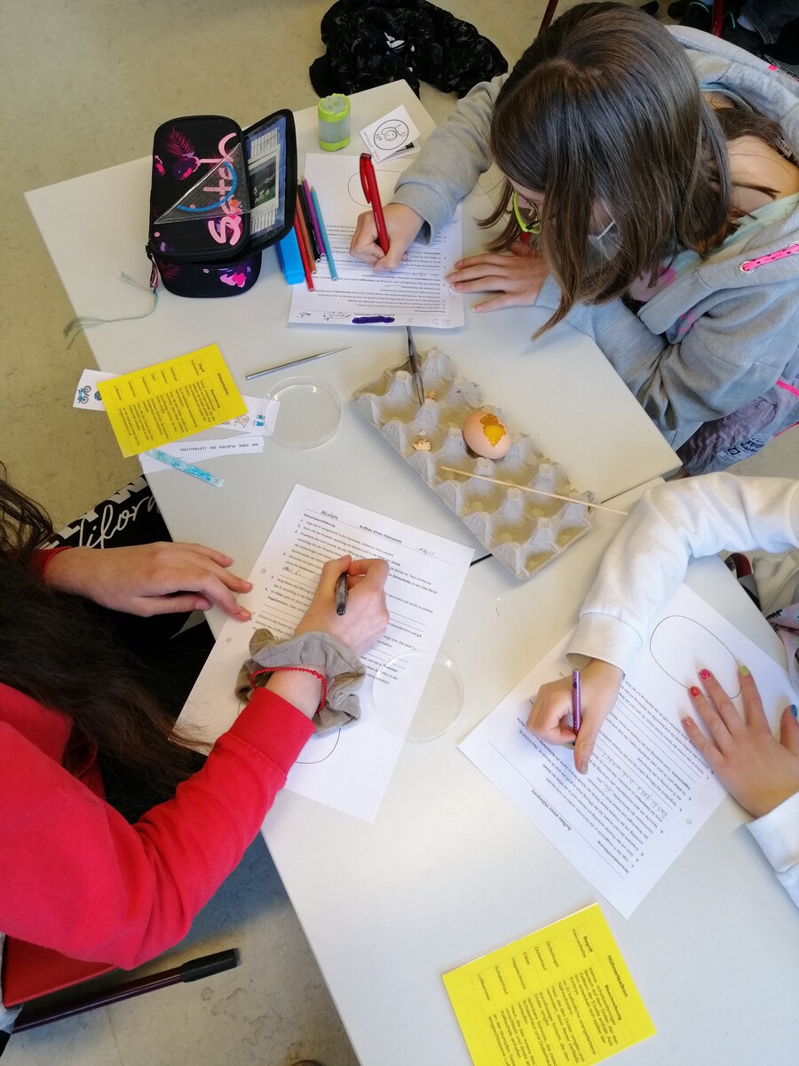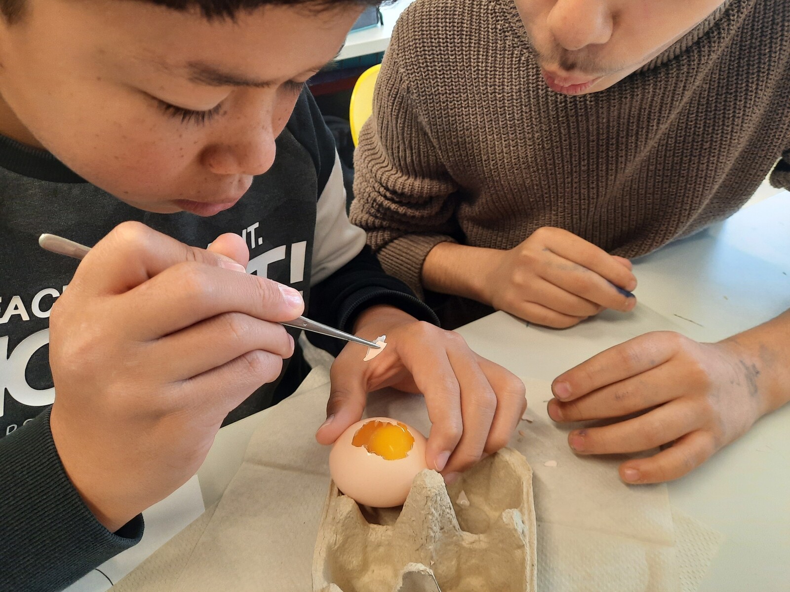 Keimscheibe, Eidotter, Hagelschnur – dem Innenleben eines Hühnereis gingen die Schüler:innen der fünften Klassen auf die Spur.