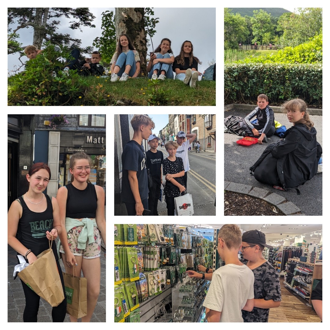 Heute haben wir einen Ausflug ins Connemara gemacht. Die Landschaft dort war total schön. Mit dem Bus fahren wir zum Kylemore Abbey, ein Kloster in Connemara, und machten dort eine kleine Pause. Danach wollten wir noch zum Killary Fjord an einen Strand gehen, aber leider regnete es zu stark, sodass wir spontan schon etwas früher zurück nach Galway gefahren sind. So hatten wir dann aber mehr Zeit zum Shoppen in der Stadt, was total super war. Wir hatten viel Spaß und fanden viele Geschenke und Souvenirs für unsere Familie und natürlich auch für uns.