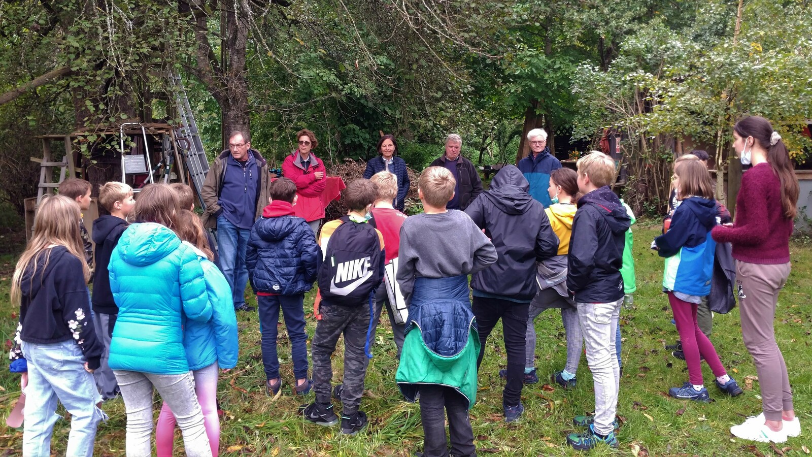 Kürzlich besuchte die Klasse 5b im Rahmen des grünen Klassenzimmers die Streuobstwiese von Joe Burry in Villingendorf. Das Team der Umweltschutzgruppe stellte für die Fünftklässler wieder ein spannendes Programm zusammen, bei dem die Schülerinnen und Schüler aktiv mitarbeiten durften.