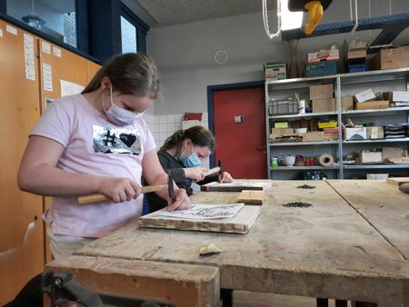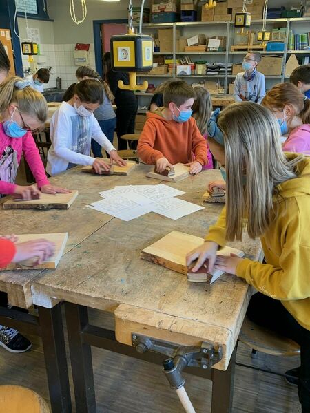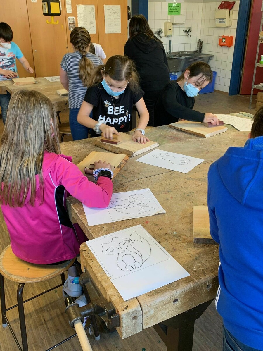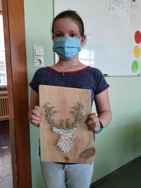 Voller Begeisterung fertigten die Schülerinnen und Schüler der vierten Klassen Nagelbilder an. Nachdem sich jedes Kind sein Wunschmotiv ausgesucht hatte, begann auch schon die handwerkliche Arbeit: