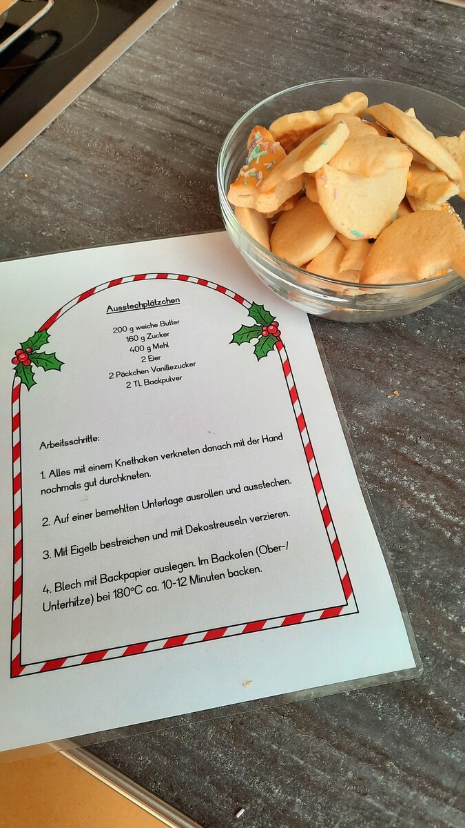 Dabei wurden nicht nur leckere Kekse produziert, sondern auch gleich die zuvor im Mathematikunterricht gelernten Gewichtseinheiten in der Praxis angewandt.