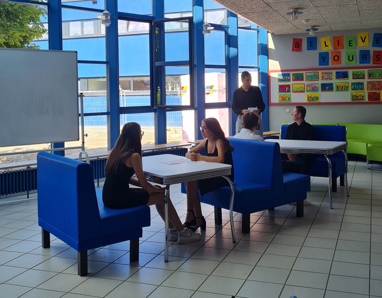 So geschehen an der Abschlussfeier letzten Donnerstag. Verabschiedet wurden die Klassenkameraden, die auf die 2-jährige Berufsfachschule gehen oder eine Ausbildung beginnen. Es wurden die Zeugnisse überreicht und Ansprachen der Klassenlehrer:innen gehalten. Anschließend gab es einen Rückblick auf den vorangegangenen Segeltörn der beiden Klassen bei den westfriesischen Inseln.
