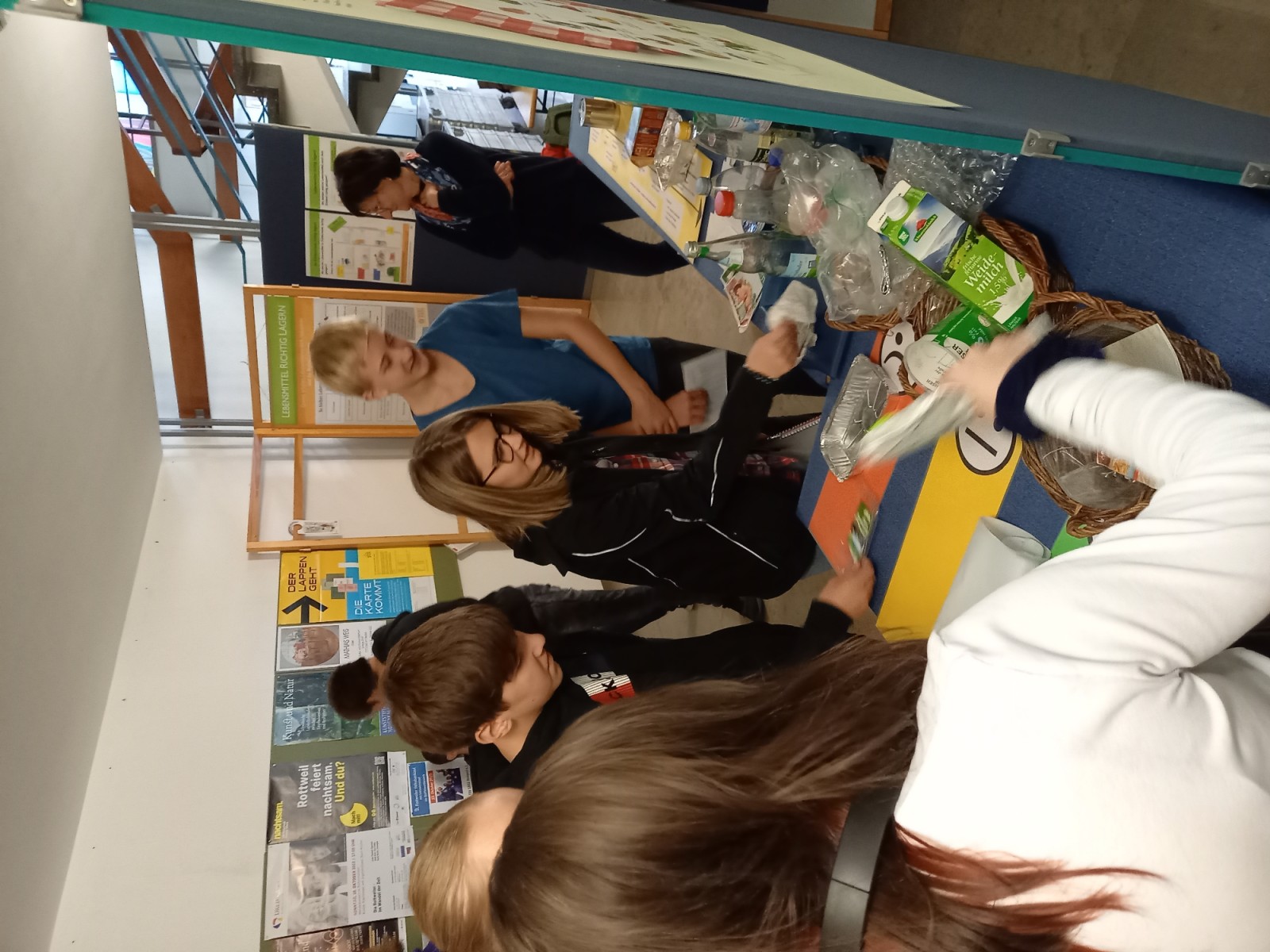 Schülerinnen und Schüler aus Klassenstufe 9 der GWRS Villingendorf besuchten nun das Landratsamt Rottweil, um mit diesem Lernangebot ihr Schulprojekt „Gesunde Ernährung“ abschließen zu können. Sie beschäftigten sich dort an Stationen mit Aspekten einer nachhaltigen Ernährung und erarbeiteten Anregungen für einen sachgerechten Umgang mit Lebensmitteln. Bereits mit kleinen Veränderungen können wir in unserem Alltag dazu beitragen, das Klima zu schonen. Dabei muss nicht auf Genuss und guten Geschmack verzichtet werden. Die Jugendlichen informierten sich an einer Vielzahl von unterschiedlichen Lerninseln, wobei jeweils andere Schwerpunkte zum Thema dargestellt worden sind. Das Forum Ernährung und Verbraucherbildung des Landwirtschaftsamtes Rottweil organisierte und betreute diese gelungene Ausstellung.