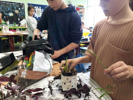 Diese wurden dann auch gleich schon mit kleinen Pflanzenablegern bestückt. Auf diese Weise bleibt alles im Kreislauf und die 4a hat vorgemacht, wie einfach es ist, Müll zu vermeiden.