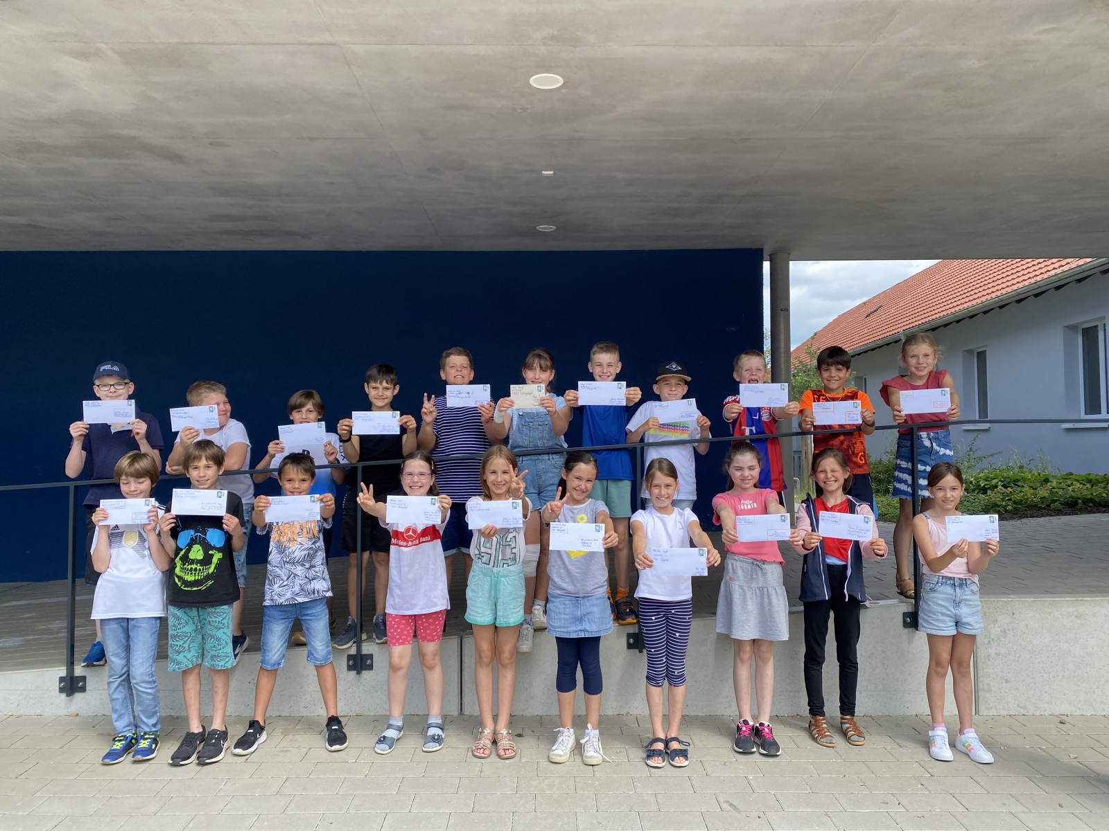 Wir, die Klasse 3b, haben im Deutschunterricht das Thema „Briefe“ behandelt. Zuerst lernten wir, wie ein Brief aufgebaut ist. Danach schrieben wir im Unterricht mehrere Briefe, um zu üben. Am Ende der Einheit durften wir einen richtigen Brief schreiben und per Post versenden. Wir haben den Brief in Schönschrift auf Briefpapier abgeschrieben und anschließend das Briefkuvert richtig beschriftet und mit einer Briefmarke beklebt. Wir hatten sehr viel Spaß die Briefe zu schreiben. Als unsere Briefe fertig waren, machten wir noch ein Gruppenbild mit unseren selbst geschriebenen Briefen. Dann liefen wir zum Briefkasten bei der Apotheke und warfen die Briefe ein. Als wir endlich fertig waren, waren wir sehr stolz auf uns. Es war ein sehr schöner Tag!
