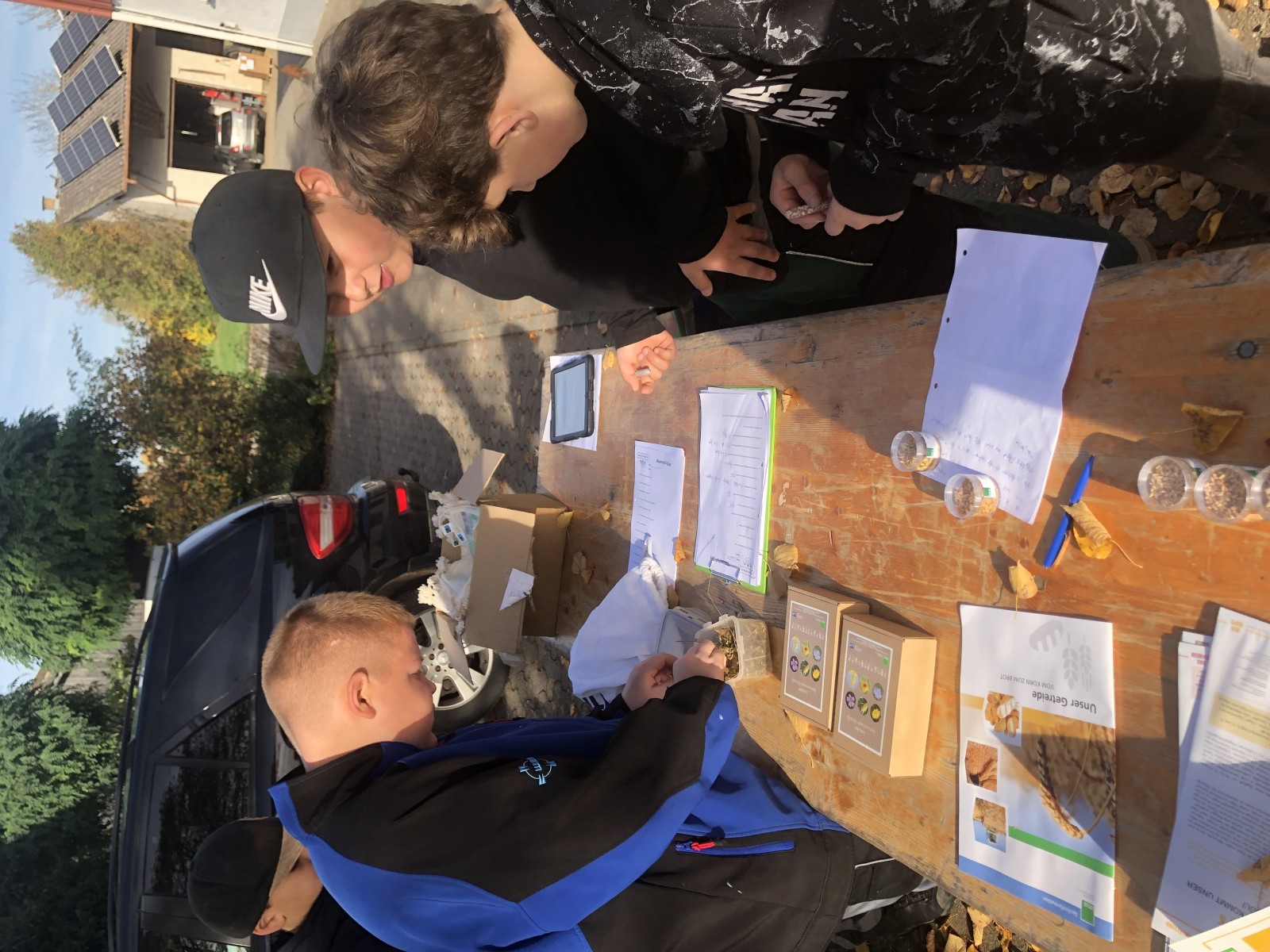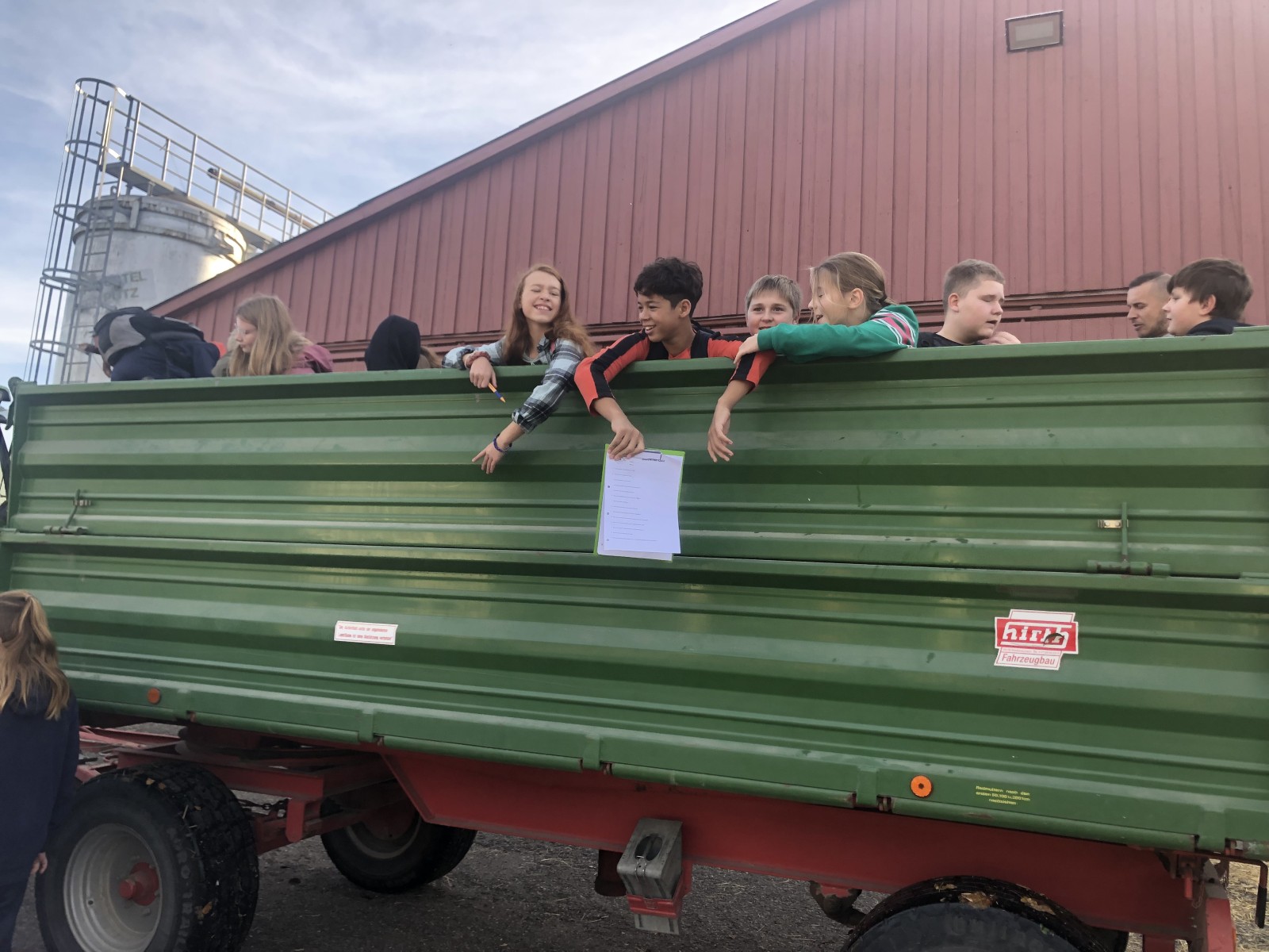 Doch es war nicht nur Platz für den Informationsaustausch oder das Beantworten von vielen Fragen. Vor allem ging es um das Wahrnehmen des Betriebs mit allen Sinnen. Dazu gehörten die verschiedenen Gerüche, das Probieren von hofeigenen Produkten, das Springen in den Kornspeicher oder die etwas andere Taxifahrt im Anhänger des großen Deutz.