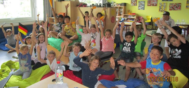 Die Kinder waren begeistert dabei. Für Chips und Getränke war gesorgt. Wir erlebten eine spannende, aber ergebnislose erste Halbzeit. Um 17:00 Uhr gingen alle schnell an ihre heimischen Fernsehgeräte und freuten sich auf die 2. Halbzeit. Wie wir nun wissen, mit schlechtem Ergebnis für Deutschland.