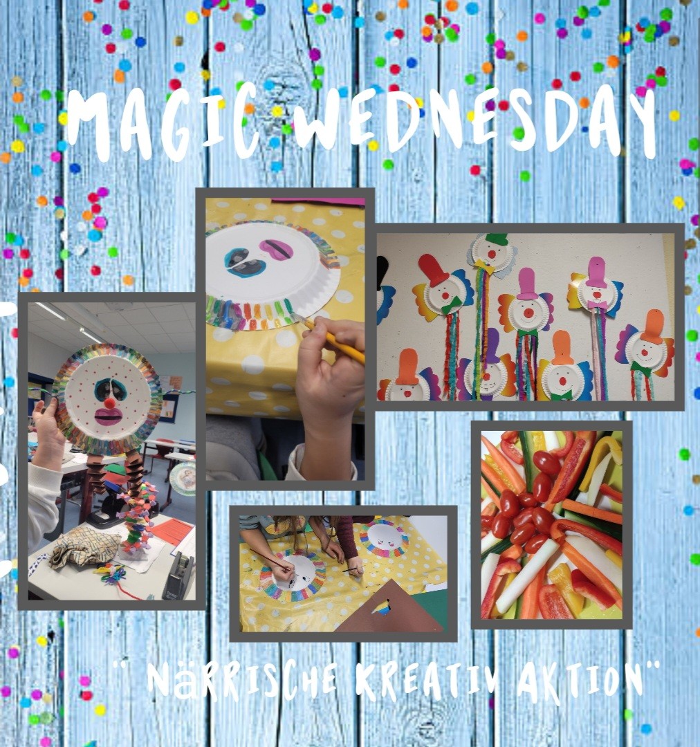 Letzte Woche gab es im Ganztag eine närrische Bastelaktion. Knapp 30 Kinder waren dabei und durften sich an drei Bastelstationen so richtig närrisch austoben. Aus Papptellern wurden verschiedene Clowns gebastelt, an der dritten Station gab es kreative Girlanden zu basteln.