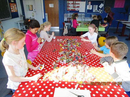 Am Mittwoch, den 21.03. stand die Mittwochsaktion unter dem Motto „Osterbasteln“. Unter der Anleitung von Frau Flaig und Frau Wolff wurden bunte Ostereier gefilzt, die das im Anschluss gebastelte Osternest füllten.