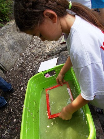 Da das Papierschöpfen während den Projekttagen ein voller Erfolg war, hat sich die Ganztagesbetreuung ebenfalls von dieser Faszination anstecken lassen.