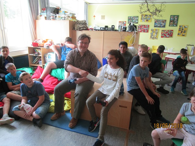 Da mehr Schülerinnen und Schüler als teilnehmende WM-Länder angemeldet sind, geht es in den ersten Runden darum, sich für die Teilnahme an der Meisterschaft zu qualifizieren. Das Auftaktspiel fand am Montag, den 18.06.2018 in der ersten großen Pause statt. Hier stellte die Schülerin Ghafran Alhamoud ihr Können gegen unseren Rektor Herrn Kropp-Kurta unter Beweis und zeigte zur Freude der Mitschüler, dass auch Schüler einmal die Oberhand behalten können.