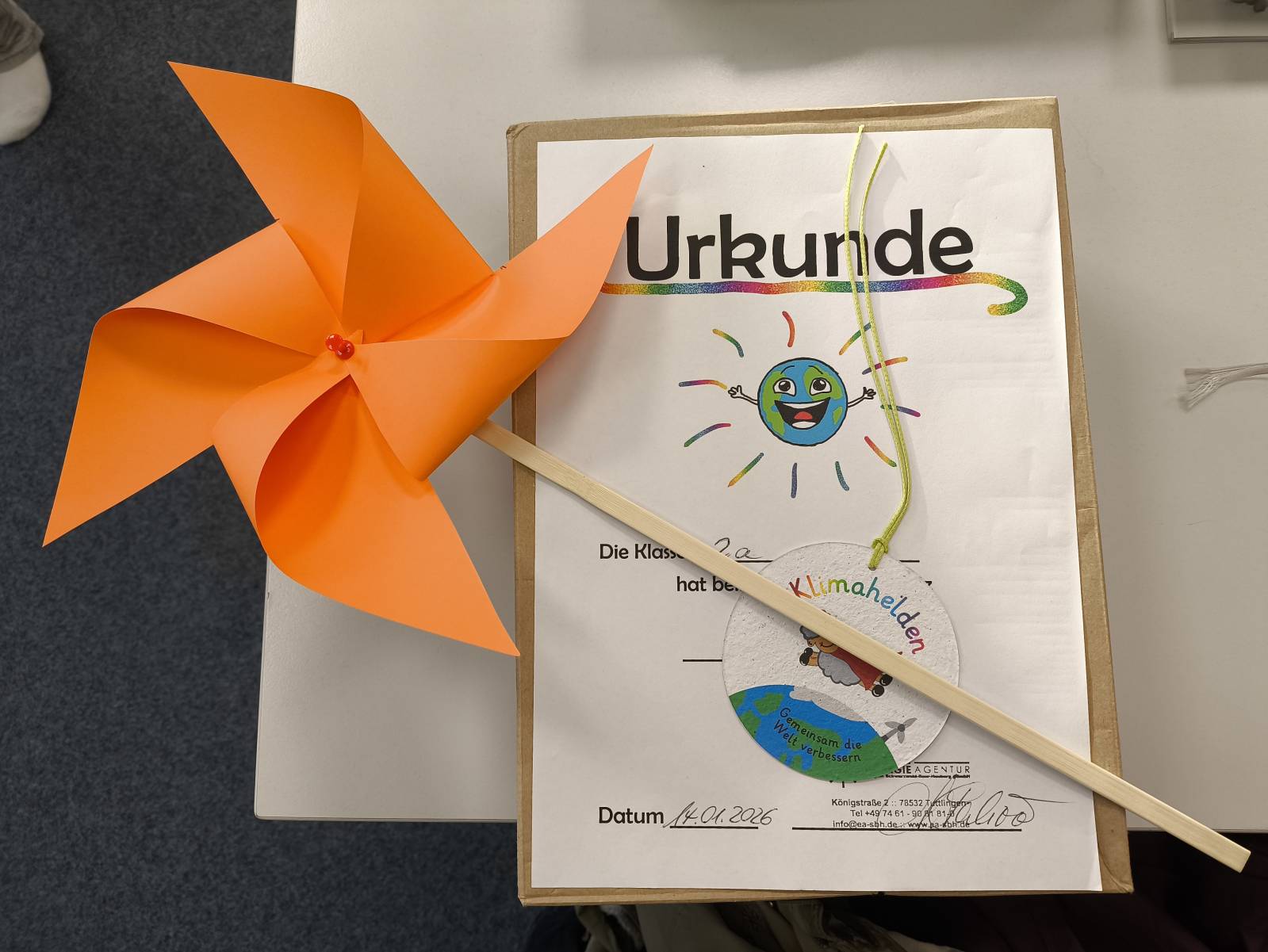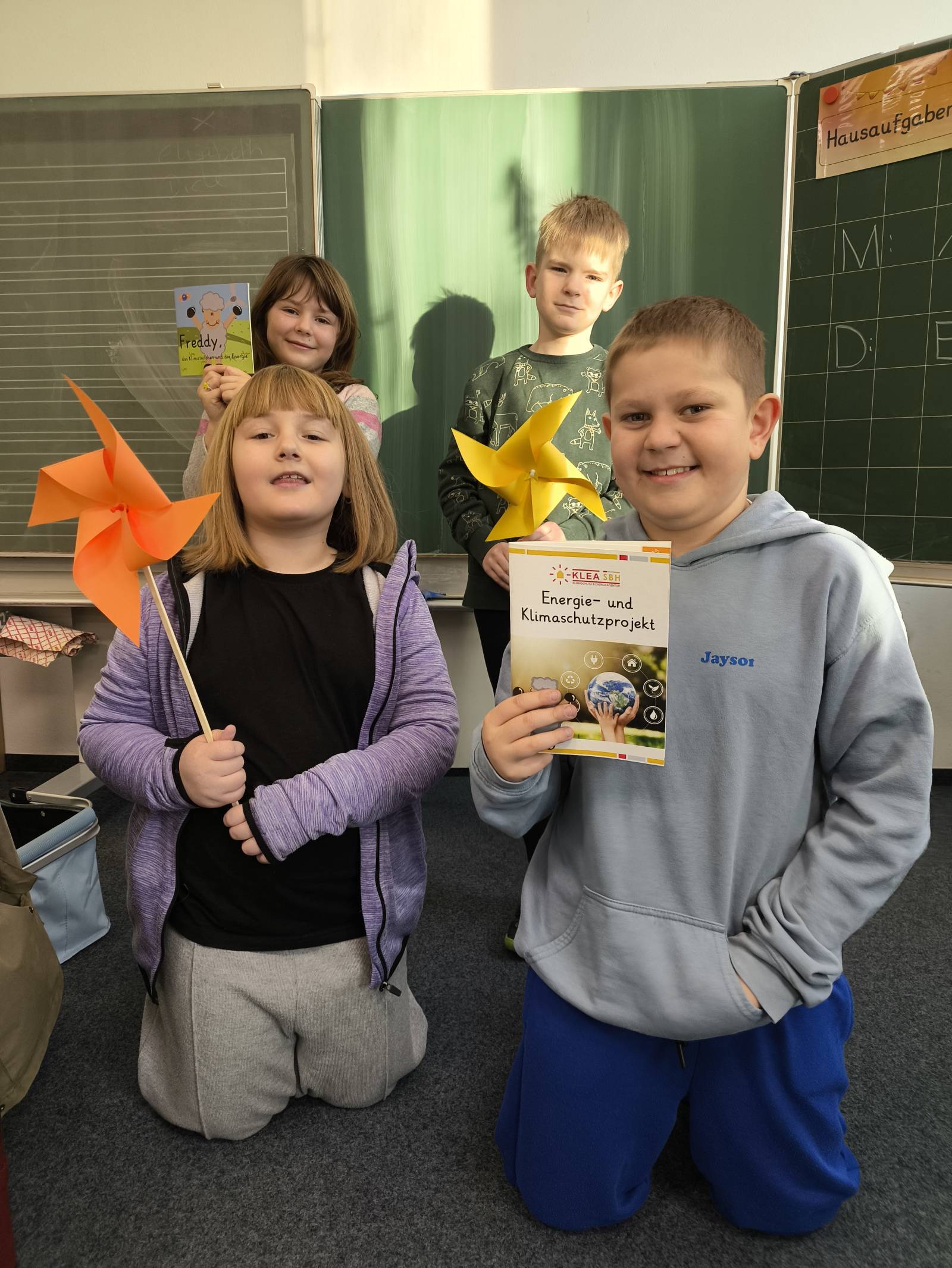 Am 14.01.2026 waren Herr König und Herr Palazzo von der Klimaschutz- und Energieagentur bei uns zu Besuch und führten in den Klassen 2a und 2b ein Klimaschutzprojekt durch. Die Schülerinnen und Schüler setzten sich dabei altersgerecht mit dem Thema Klimaschutz auseinander. Unter anderem bastelten sie Windräder und spielten gemeinsam ein Klimaspiel auf dem Schulhof. Natürlich gab es auch verschiedene Aufgaben, bei denen die Schülerinnen und Schüler aktiv mitarbeiten und ihr Wissen einbringen konnten.