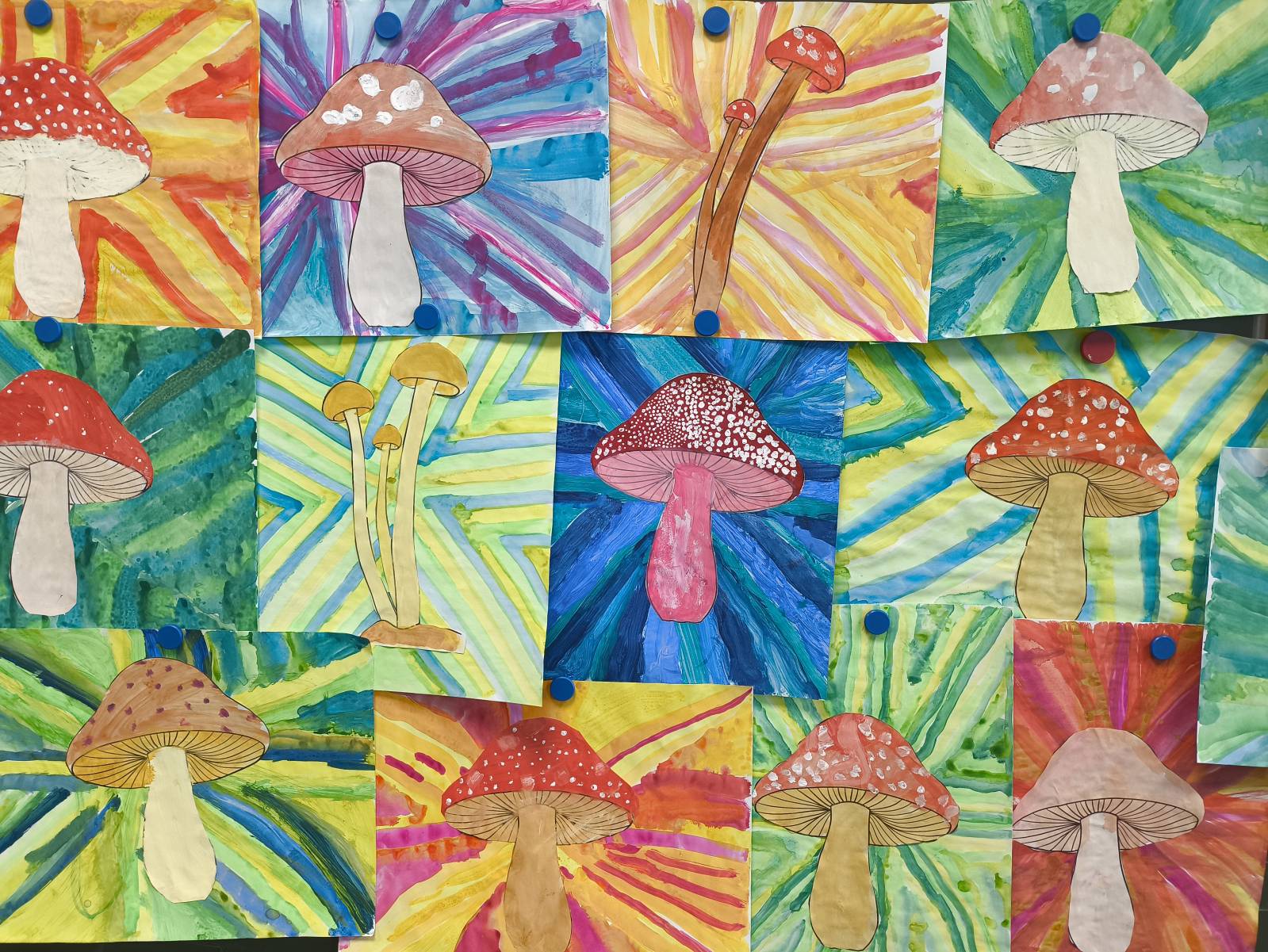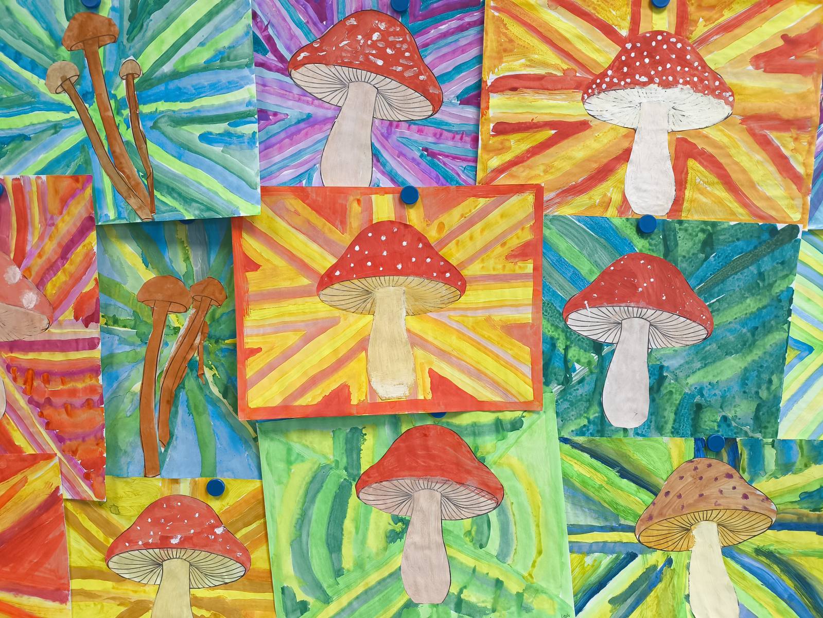 Geschrieben am 19. November 2025. Kunstprojekt Pilze Passend zum Herbst und dem Thema Pilze im Sachunterricht haben die Kinder der Klassenstufe 2 in der Kreativstunde tolle Kunstwerke gestaltet.