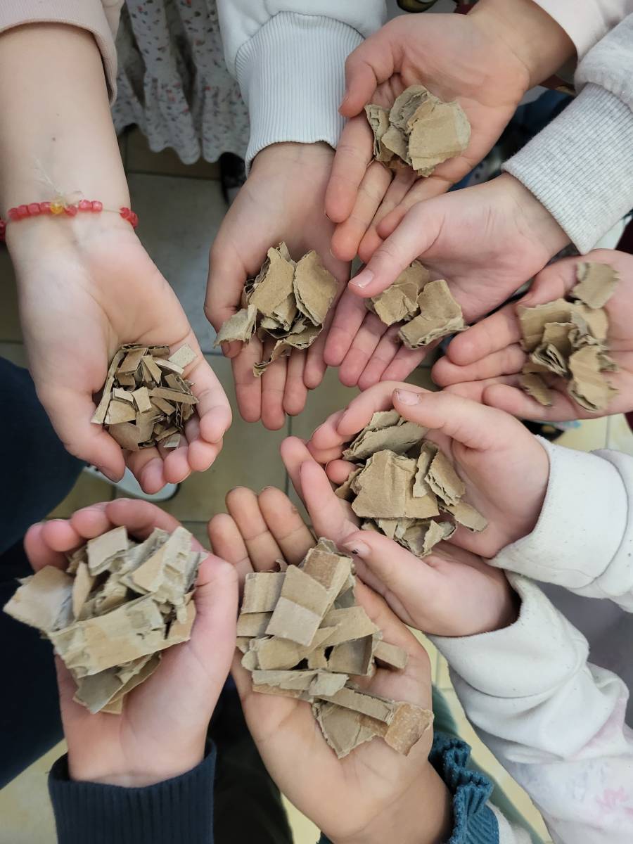 Der große Umzug ist beendet und die Wunderwesen konnten in ihr neues Zuhause einziehen. Konnte es schon jemand erahnen? Bei den Wunderwesen handelt es sich um Kompostwürmer. Die Klasse 2a hat den Kompostwürmern beim Umzug geholfen. Um ihnen das neue Zuhause noch gemütlicher zu machen, haben die Schülerinnen und Schüler für die Kompostwürmer fleißig Kartons kleingerissen. Für die Kompostwürmer ist Karton/Papier ein wichtiges Faserfutter und zudem verkriechen sie sich gerne in den Kartonlöchern.