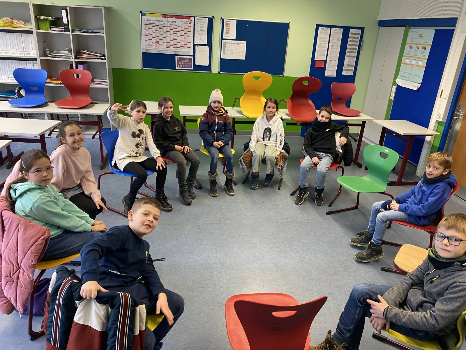Zusammen mit der Schulsozialarbeiterin Claudia Seifried startete das Kinderparlament in die erste Runde. Die Klassensprecher aus der Klassenstufe 2-4 dürfen hier einmal im Monat ihre Anliegen und ihre Ideen für die Grundschule vorbringen. Die Kinder waren voller Motivation dabei und es konnten einige Themen angegangen werden. Wir freuen uns über dieses demokratische Parlament.