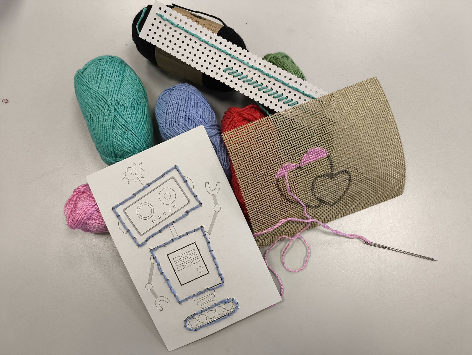 Im TOP Sticken übten die Schülerinnen und Schüler zunächst das Sticken auf Stickkarten. Jedes Kind durfte sich eine Stickkarte mit Lieblingsmotiv aussuchen und anschließend bearbeiten. Später arbeiteten sie auf Stramin weiter; dabei entstanden viele schöne Bilder.