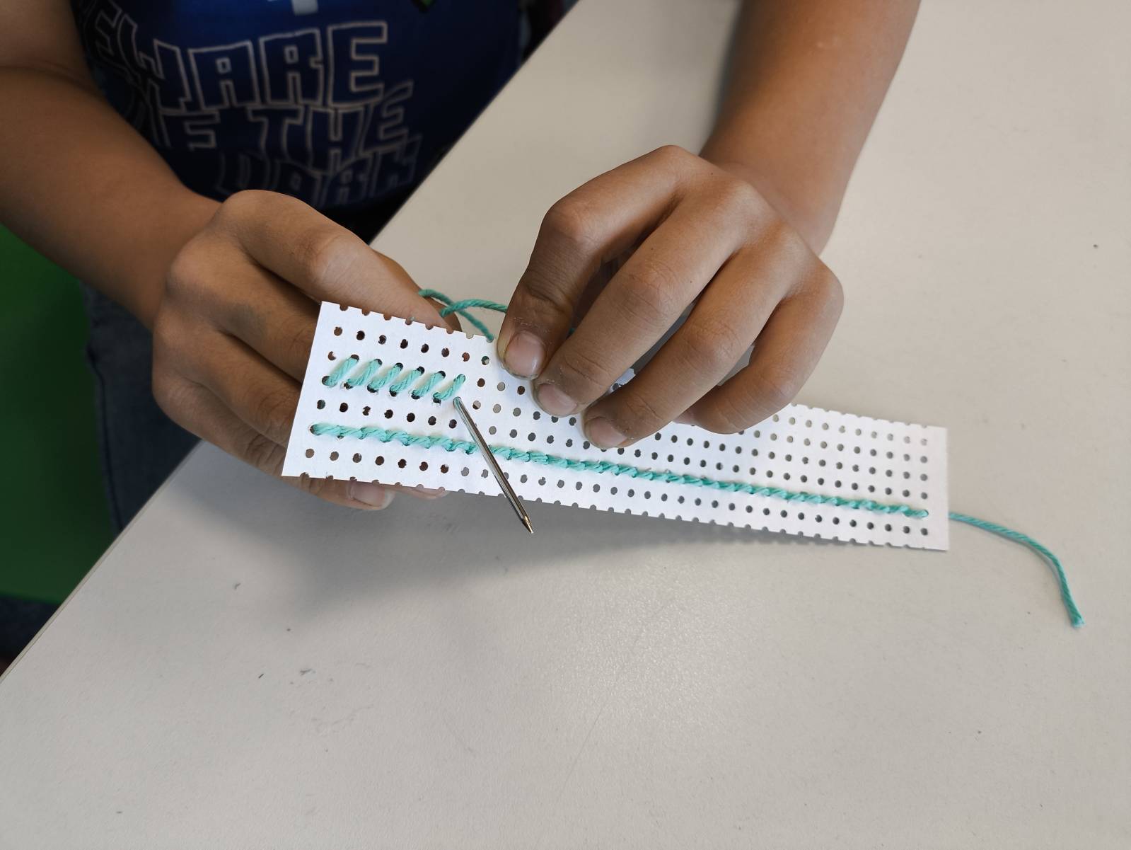 Die Schülerinnen und Schüler beschäftigten sich mit unterschiedlichen Sticharten und verbesserten dabei Schritt für Schritt ihre Feinmotorik. Mit viel Geduld und Kreativität entwickelten sie ein Gefühl für das Arbeiten mit Nadel und Faden und sammelten wertvolle grundlegende Erfahrungen im textilen Gestalten.
