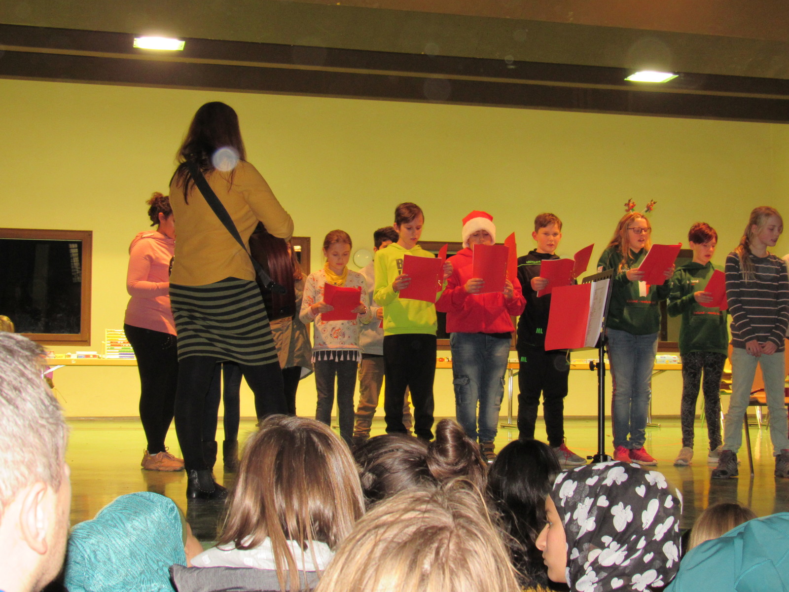 Eröffnet wurde das bunte Markttreiben durch die wieder eingeführte Bläserklasse unter Leitung des Dirigenten Joachim Mager und den Grundschulchor unter Leitung von Musiklehrerin Kathrin Schwarz sowie der musikalischen Sozialwerkstatt mit englischsprachigen Weihnachtsliedern, begleitet und geleitet von der Musikerin und Englischlehrerin Lynda Cullen.