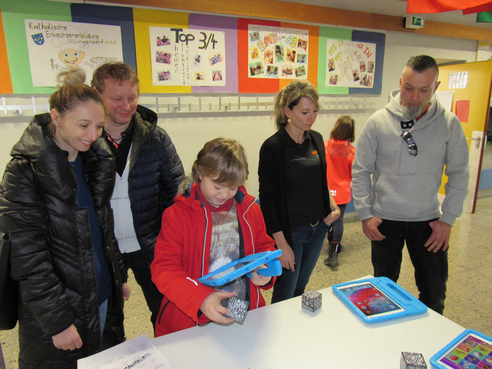 Mit Feuereifer waren insbesondere die kleineren Besucher dabei, die mit einem Laufzettel ausgestattet, zahlreiche Stationen besuchen konnten. Die Eltern hatten derweil Gelegenheit mit den Villingendorfer Pädagogen sowie Eltern- und Schülervertretern ins Gespräch zu kommen. Besonders spannend wurde es bei den von Markus Birkenmaier durchgeführten Experimenten im Physik-Raum und den von Jana Schamberger angebotenen Aufgaben zum Thema Universum an den IPads und kniffligen Rätseln an der Computer-Station bei Marion Bader.