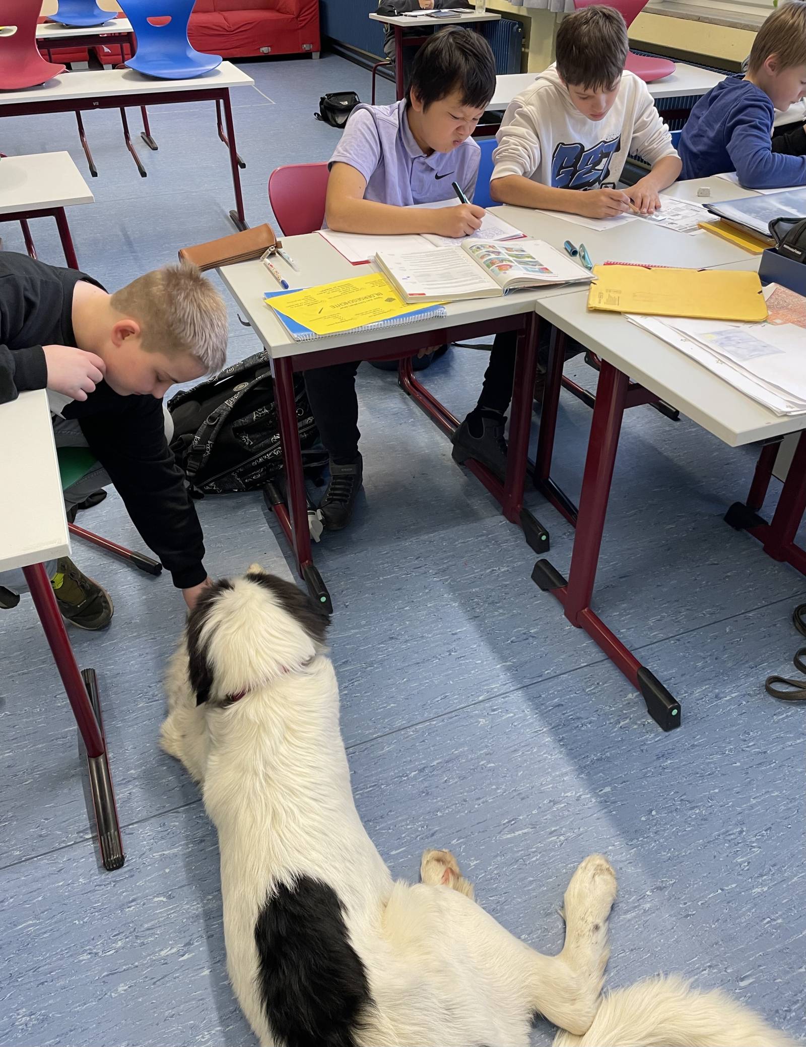 Herrlich! Da wird der Boden extra für sie saubergemacht, es ist still, damit sie schlafen kann und sie bekommt Streicheleinheiten, wenn eine Schülerin oder ein Schüler einfach mal kuscheln möchte.