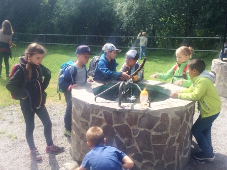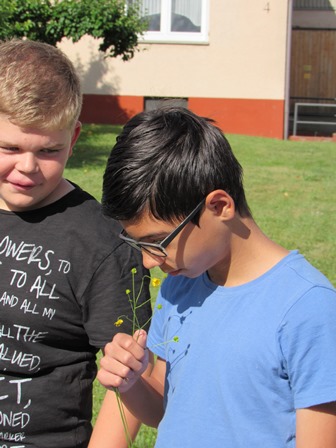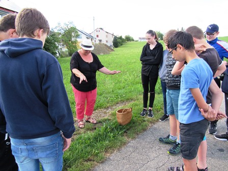 Bei einer Kräuterwanderung mit Karin Mager lernten die Schülerinnen und Schüler, welche Kräuter man essen kann.