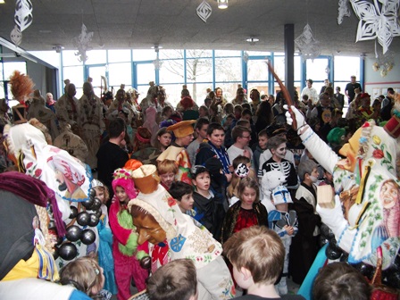 Nachdem sich die Schülerinnen und Schüler mit ihren Klassenlehrern auf die Fasnet eingestimmt hatten, versammelte sich die gesamte Schulgemeinschaft in der Aula. Hier wurden die die Kinder und Jugendlichen von den Villingendorfer Narren, den Habermüaslern befreit.