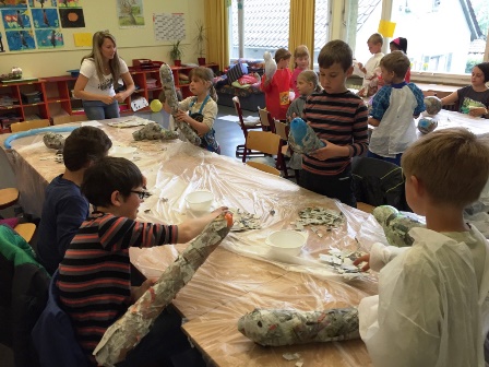 Bei der Projektgruppe "Tiere in Afrika" konnten die Schülerinnen und Schüler einiges über in Afrika lebende Tiere erfahren. Aus den verschiedensten Materialien, wurden Tiere selbst hergestellt.
