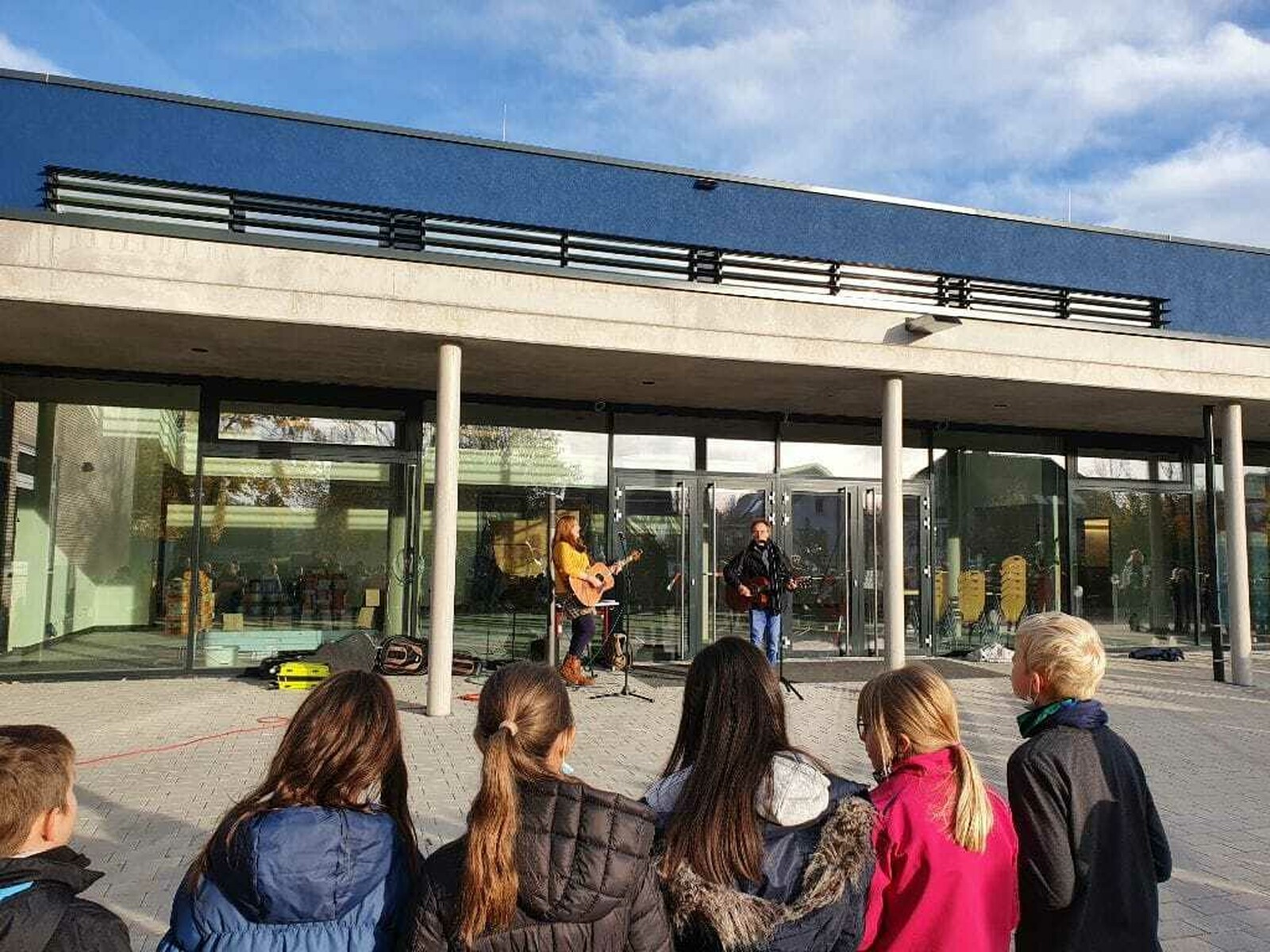 Englischlehrerin Lynda Cullen entließ gemeinsam mit ihrem musikalischen Freund Fintan Lucy aus Irland mit einem kleinen „open-air“-Konzert vor der neuen Mehrzweckhalle alle Schülerinnen und Schüler der GWRS Villingendorf in die Herbstferien. „Ein verdientes kulturelles Highlight nach langen Monaten der Entbehrung auf diesem Gebiet“, so Schulleiter Rainer Kropp-Kurta. Die wenigen Wochen des noch jungen Schuljahres seien bereits sehr ereignisreich gewesen. „Bereits vor dem offiziellen Startschuss fanden die Lernbrücken statt und trotz der Einschränkungen durch Corona mit doch auch einigen positiven Fällen an der Schule, den Testungen, Maskenpflicht und teils Kohorten-Trennung hat es glücklicherweise zahlreiche Aktivitäten einzelner Klassen gegeben“, ergänzte Konrektorin Eugenia Remisch.