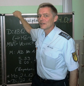 Nach sehr intensiven und erkenntnisreichen 90 Minuten verabschiedete sich Riedlinger von den Abschlussschülern der zehnten Klasse. Er bedankte sich bei den Jugendlichen für deren lebhafte Mitarbeit. Zu einem Pausenkaffee reichte es leider nicht mehr, da bereits erwartungsvolle Mädchen und Jungen aus der fünften Klasse ihre Plätze eingenommen hatten. Hier gehe es nun altersgemäß um die Teilnahme am Straßenverkehr als Fußgänger, Pkw-Mitfahrer und Fahrradlenker, erklärte Riedlinger. Blitzende Kinderaugen, emporgestreckte Finger und ungeduldiges Getuschel ließen erst gar keine Zweifel aufkommen – um die Motivation dieser Altersgruppe musste er sich keine Sorgen machen.
