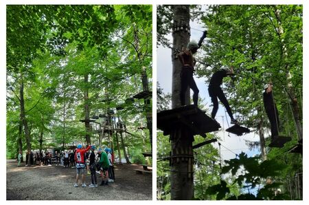 Entlang des Neckartalradweges wanderten die Sechstklässler zur Grillstelle am Fischweiher, wo sie es sich bei Grillwürsten, Marshmallows und Stockbrot gut gehen ließen. Auf den Spuren des Mittelalters befanden sich die Schülerinnen und Schüler aus Klassenstufe 7 mit ihrem Besuch der Burgruine Herrenzimmern. Im Kletterpark ging es für die Achtklässler hoch hinaus.