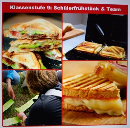 Klassenstufe 9 traf sich zum gemeinsamen Schülerfrühstück, das unter dem Motto „Baue dir dein Sandwich“ stand. Anschließend bewiesen die Jugendlichen bei kooperativen Spielen ihre Teamfähigkeit und ganz viel Humor!