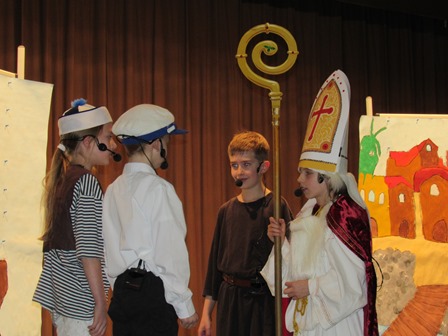 Bei einem musikalischen Nikolausspiel, welches von Daniela Aberle, Raphael Meißner und Birgitt Schlieter einstudiert wurde, waren sämtliche Kinder der Grundschule beteiligt. Schließlich eröffnete „Lasst uns glücklich sein“ der Klassen 2a und 3b den eigentlichen Weihnachtsmarkt.