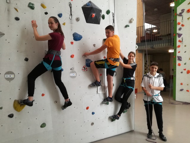 Vier Schüler der Klassenstufe 8 haben in der Kletterhalle K5 in Rottweil eine erfolgreiche Kletterausbildung als Klettermentoren absolviert. Laura, Carmen, Ekin und Robin haben von Kletterexperte Fabian Lehmann an drei Nachmittagen gezeigt bekommen, wie man einen Klettergurt einstellt, wie man einen Achterknoten bindet und wie man das Sicherungsgerät "smart" bedient. Der Partnercheck ist beim Klettern mit das Wichtigste, denn die Sicherheit des Kletterers steht an oberster Stelle.