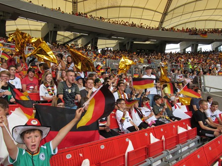 Auch die knappe und wegen der vielen deutschen Torchancen unnötige 0:1 Niederlage tat der ausgelassenen Stimmung keinen Abbruch.