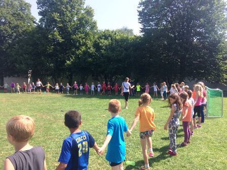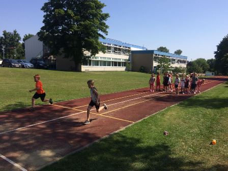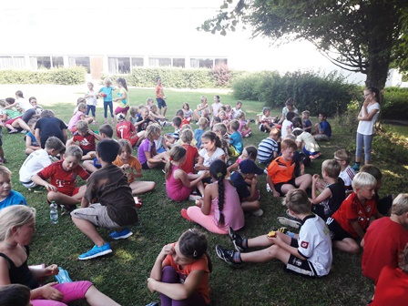 Am Mittwoch, den 19.07.2017 war ein ganz besonderer Tag für die komplette Klassenstufe 1 und 2 sowie für die Vorschüler vom Kindergarten St. Maria und vom Kindergarten Waldenwiesen. Rund 100 Kinder fanden sich bei strahlendem Sonnenschein zu einem Spiel- und Sporttag auf dem Schulhof ein, um sich gemeinsam zu bewegen und Spaß zu haben. So freute sich so mancher Schüler, ein jüngeres Geschwister- oder Nachbarskind anzutreffen.