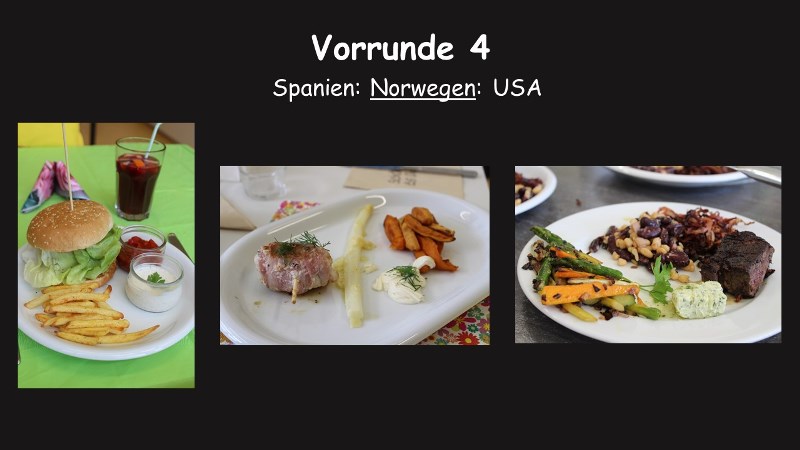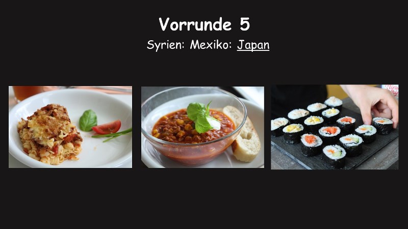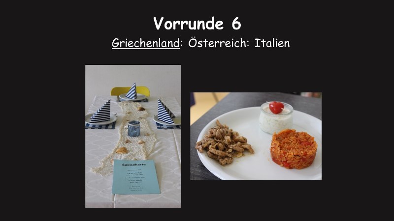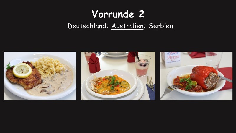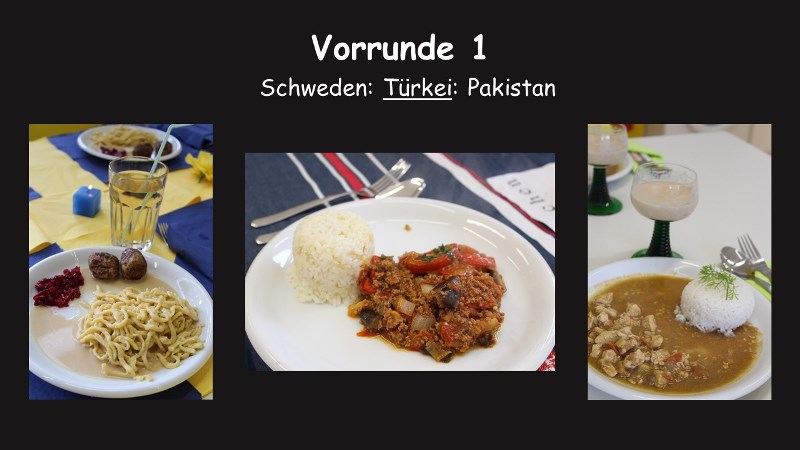 Am Dienstag, 12.06.2018 starteten die Neunt- und Zehntklässler in die Koch-WM 2018 und bereiteten im Team innerhalb von 6 Vorrunden-Spielen ein landestypisches Hauptgericht mit einem Getränk zu. Die mit einem Schüler, einem Lehrer und einem Partner der Schule besetzte Jury, bewertete neben dem Geschmack, Aussehen und Kreativität der Speise, auch die Tischdekoration und wie sich die Schülerinnen und Schüler beim Servieren und Bedienen bei Tisch verhielten. Um einen kleinen Einblick in die überzeugende und teilweise sehr aufwändige Arbeit der Köche zu erhalten, werden nachfolgend die Speisen der teilnehmenden Teams dargestellt. Das auf den Collagen unterstrichene Land, konnte das einzelne Match für sich gewinnen und kommt somit weiter ins Halbfinale.