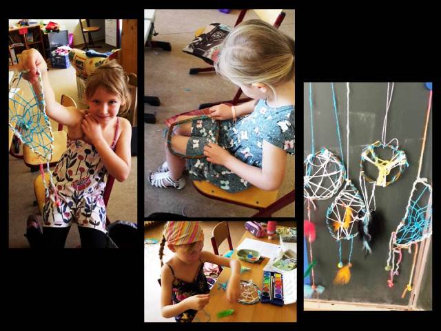 In Amerika erzählte ein Indianerkind die Geschichte des Traumfängers. Die Kinder suchten sich Stöcke auf dem Schulgelände und knüpften ihren eigenen Traumfänger.