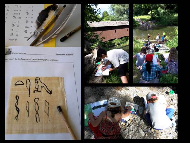 In Ägypten lernten die Kinder Hieroglyphen kennen und schrieben diese mit Tinte und einem Schilfrohr auf Papyrus.