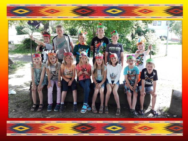 Die Indianerkinder haben während der Projekttage erfahren, wie einst die alten Indianer lebten und wie ihr Leben heute aussieht. So begaben sie sich auf eine spannende Spurensuche, lernten Musik und Kultur der „Rothäuter“ kennen, stellten indianischen Maisfladen her, bastelten Schmuck und schminkten sich wie mutige Krieger, lernten mit Pfeil und Bogen umzugehen und vieles mehr.