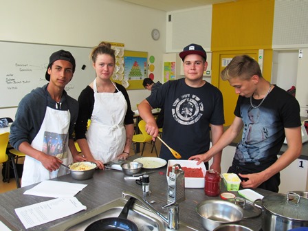 In der Projektgruppe „In der Küche um die Welt“ beschäftigten sich einige Schüler/innen aus Klasse 7 und 8 mit dem Essen aus unterschiedlichen Ländern. Von Süßspeisen aus Syrien, über die türkische Küche bis hin zu einer spanischen Nachspeise. Es war sehr lecker und hat allen viel Spaß gemacht!