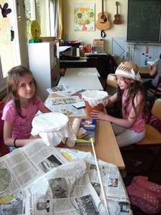 Trommel bauen: Wir mussten gut darauf achten, dass das Papier gut gespannt war, damit unsere Trommeln auch gut klingen.