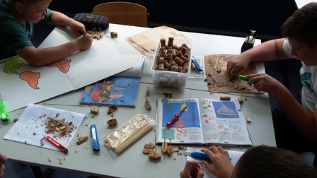 In der Projektwoche haben die Schüler der Klasse 5-8 unter Leitung von Daniela Aberle eine Piratenspiel hergestellt. Sie haben das Spielfeld als Weltkarte, die Spielfiguren als Piratenschiffe und die Fragekarten für das Spiel selbst hergestellt und gestaltet.