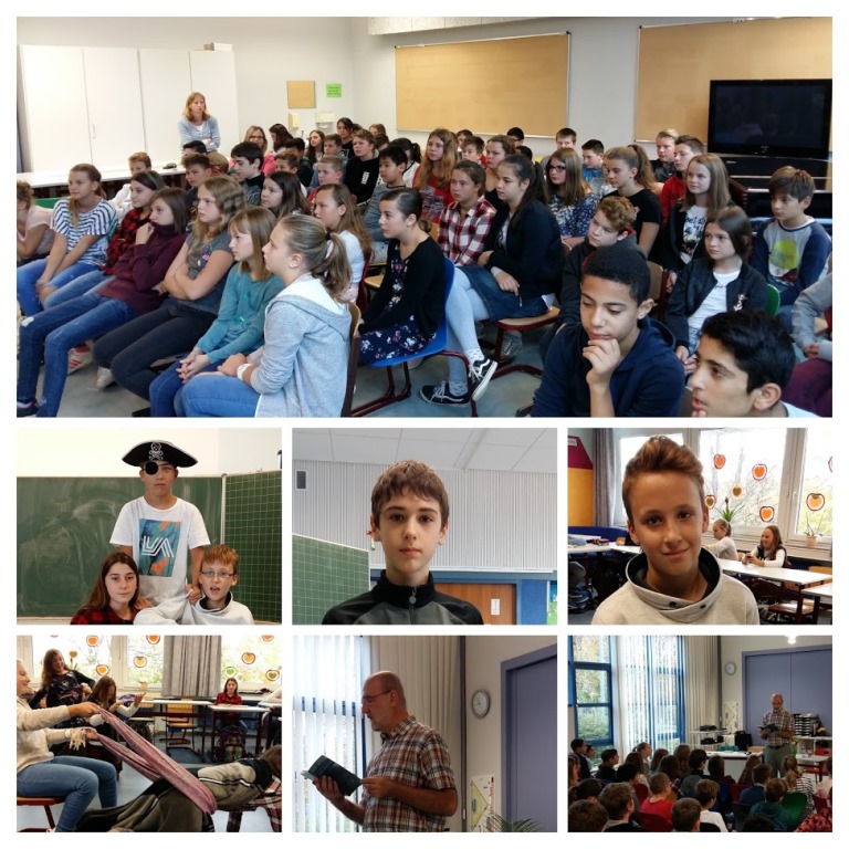 Ein Standbild gestalten – das war neben der ausgiebigen Lesezeit sowie einer kurzen Buchvorstellung die Aufgabe, mit der sich die Schülerinnen und Schüler der Klasse 6 auseinandersetzten. Dabei galt es eine Szene aus dem selbst gewählten und vorgestellten Buch mithilfe von Mitschülerinnen und Mitschülern aussagekräftig darzustellen. Dieser handlungsorientierte Umgang mit Literatur war für alle Beteiligten eine interessante und positive Erfahrung. Höhepunkt der Frederickwoche war die Autorenlesung mit Klaus Schuker, der aus seinen spannenden Krimis vorlas und die Schülerinnen und Schüler begeisterte.