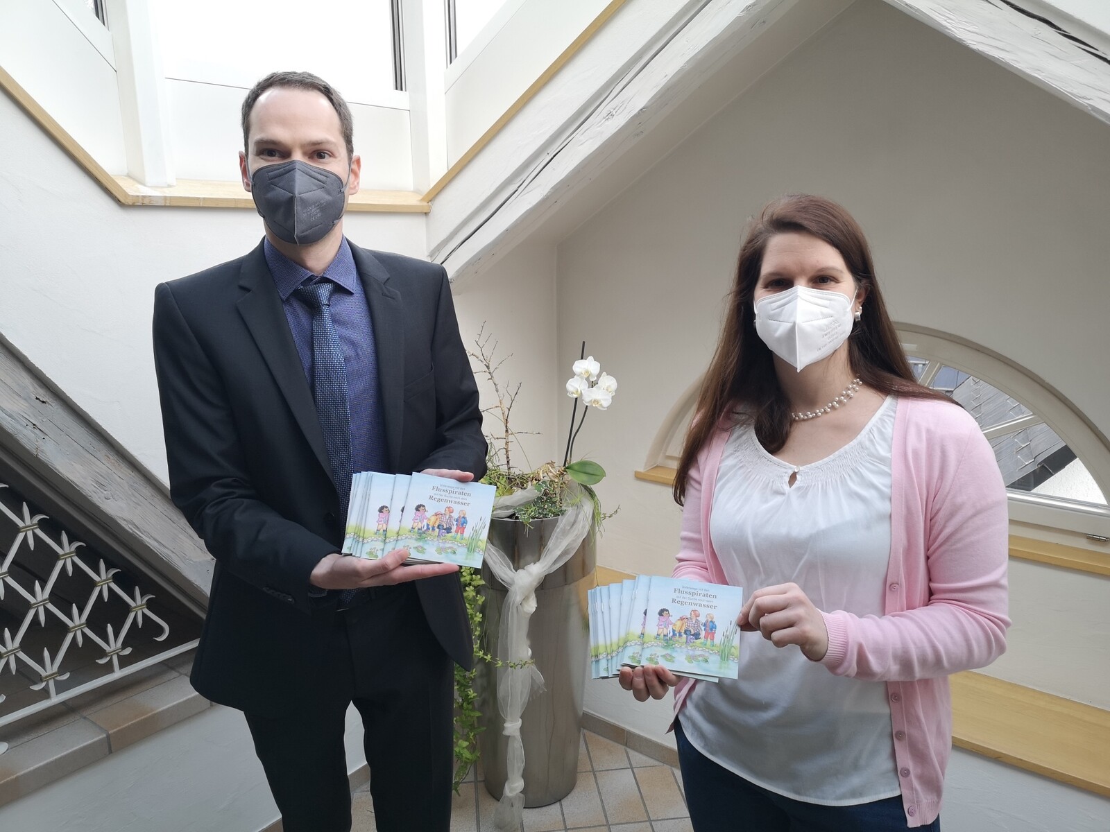 Kürzlich übergab Bürgermeister Marcus Türk der Grundschulkoordinatorin Birgit Storz mehrere Exemplare des Kinderbuches „Unterwegs mit den Flusspiraten“ zur Einbindung in den Schulunterricht. Diese Büchlein der Fortbildungsgesellschaft für Gewässerentwicklung passen thematisch hervorragend zum derzeitigen Unterrichtsinhalt, welcher sich rund um das Regenwasser dreht. Kindgerecht erklärt und mit altersgerechten Zeichnungen unterlegt, sollen diese Büchlein die Schülerinnen und Schüler der Grundschule zu einem aktiven Mitwirken anregen und zu einem Lernen mit Spaß beitragen.