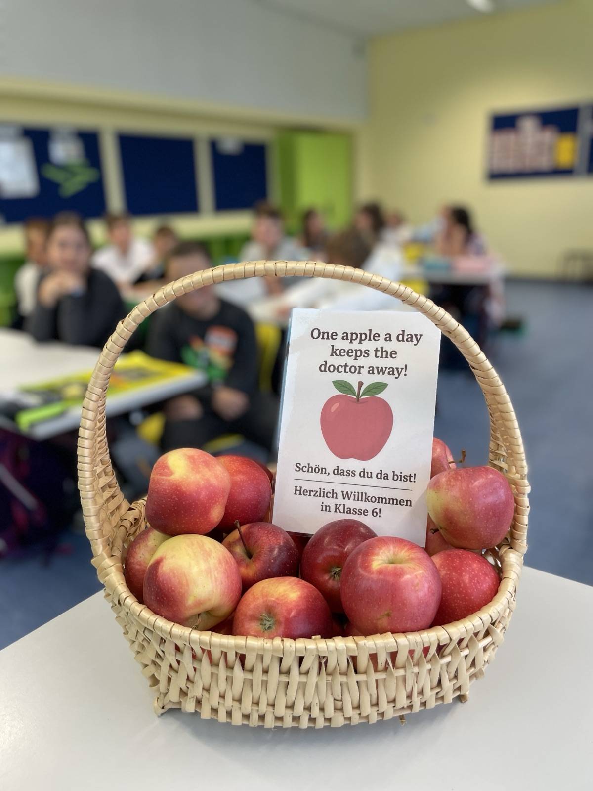 Mit einem fruchtigen Willkommensgruß sind unsere neuen Sechstklässlerinnen und Sechstklässler ins neue Schuljahr gestartet. Unter dem Motto „One apple a day keeps the doctor away!“ möchten wir allen einen gesunden, fröhlichen und erfolgreichen Start in die nächste Etappe ihrer Schulzeit wünschen.