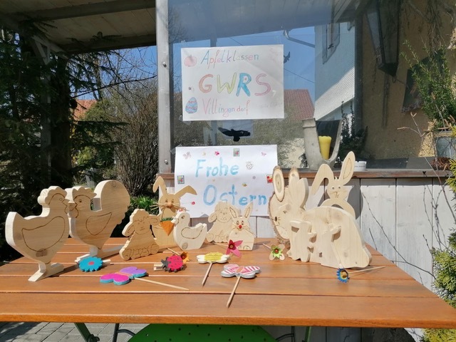 Mit Unterstützung von Pitt Lang stellt die Klasse 6 ihre Osterbasteleien, die sie nach dem Ausfall der geplanten Verkaufsaktion noch übrig haben, auf dem Hof der Krone in Villingendorf aus. Auf Spendenbasis können die Holzfiguren von Samstag bis Montag 11 Uhr bis 14.30 Uhr und ab 17 Uhr einfach abgeholt werden.