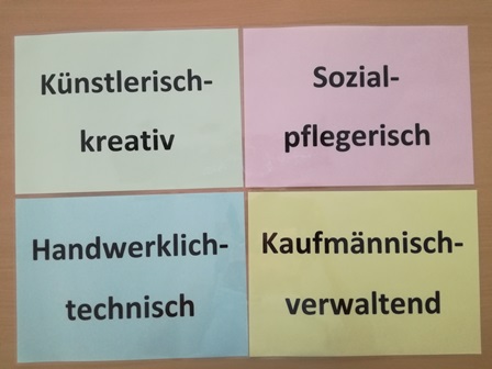 Bei dieser Entscheidung sollen laut Fr. Hattler immer die eigenen Stärken im Mittelpunkt stehen: Was ist typisch ich? Was kann ich? Was will ich? Als Hilfestellung wurden nochmal die verschiedenen Arbeitsbereiche besprochen und die bisherigen Erfahrungen aus den Praktika reflektiert.