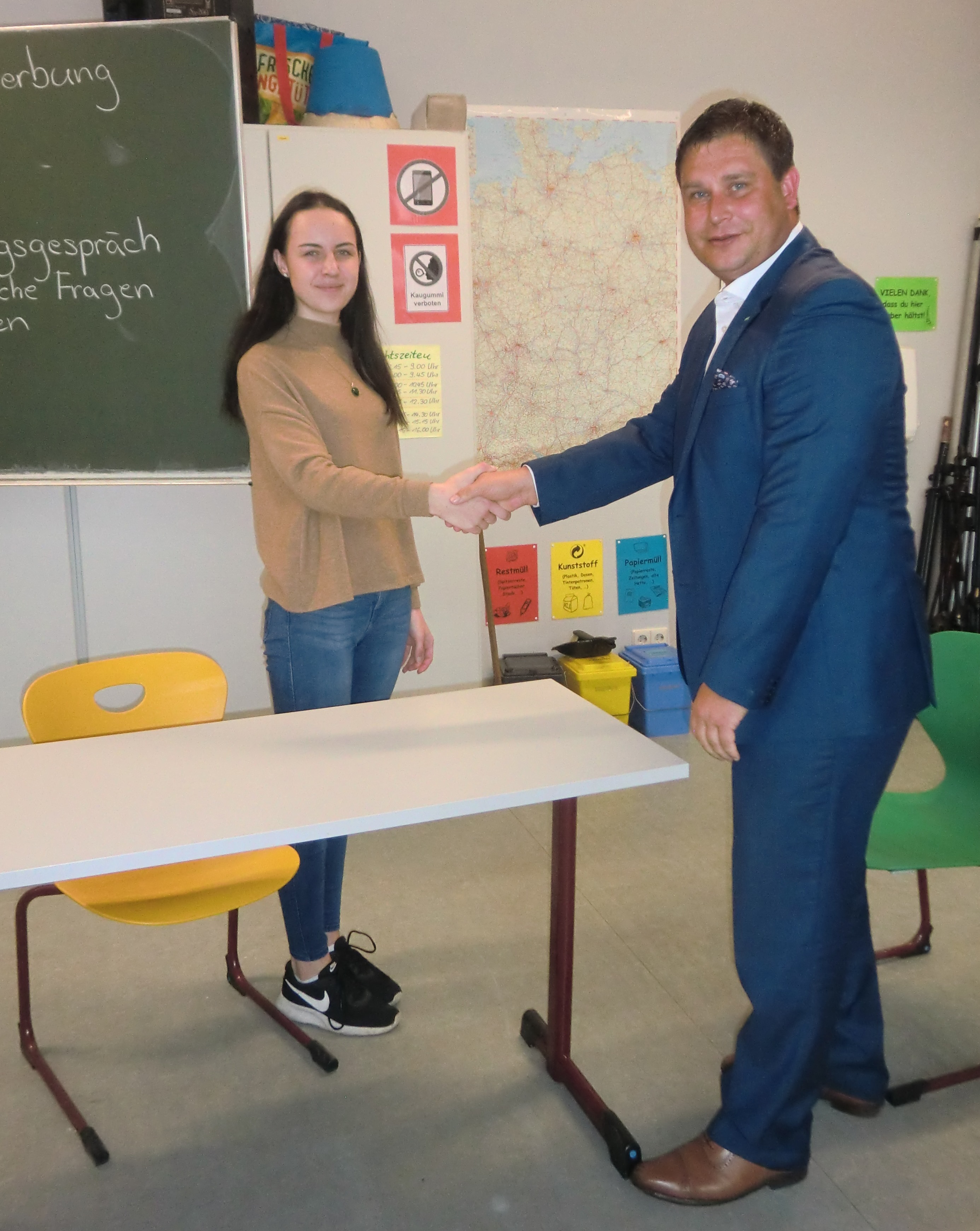 Gemeinsam mit den Jugendlichen wiederholte Banholzer, welche Unterlagen für eine vollständige Bewerbung notwendig sind. Weiter ging es über Zeugnisse und Bescheinigungen bis hin zu dem überaus wichtigen Bewerbungsanschreiben. Dabei kamen auch die typischen „Nogoes“ nicht zu kurz: Bewerbungen auf Butterbrotpapier, nicht abgeänderte Texte aus dem Internet und, der Klassiker, ein abenteuerliches Selfie als beigefügtes Bewerbungsfoto.