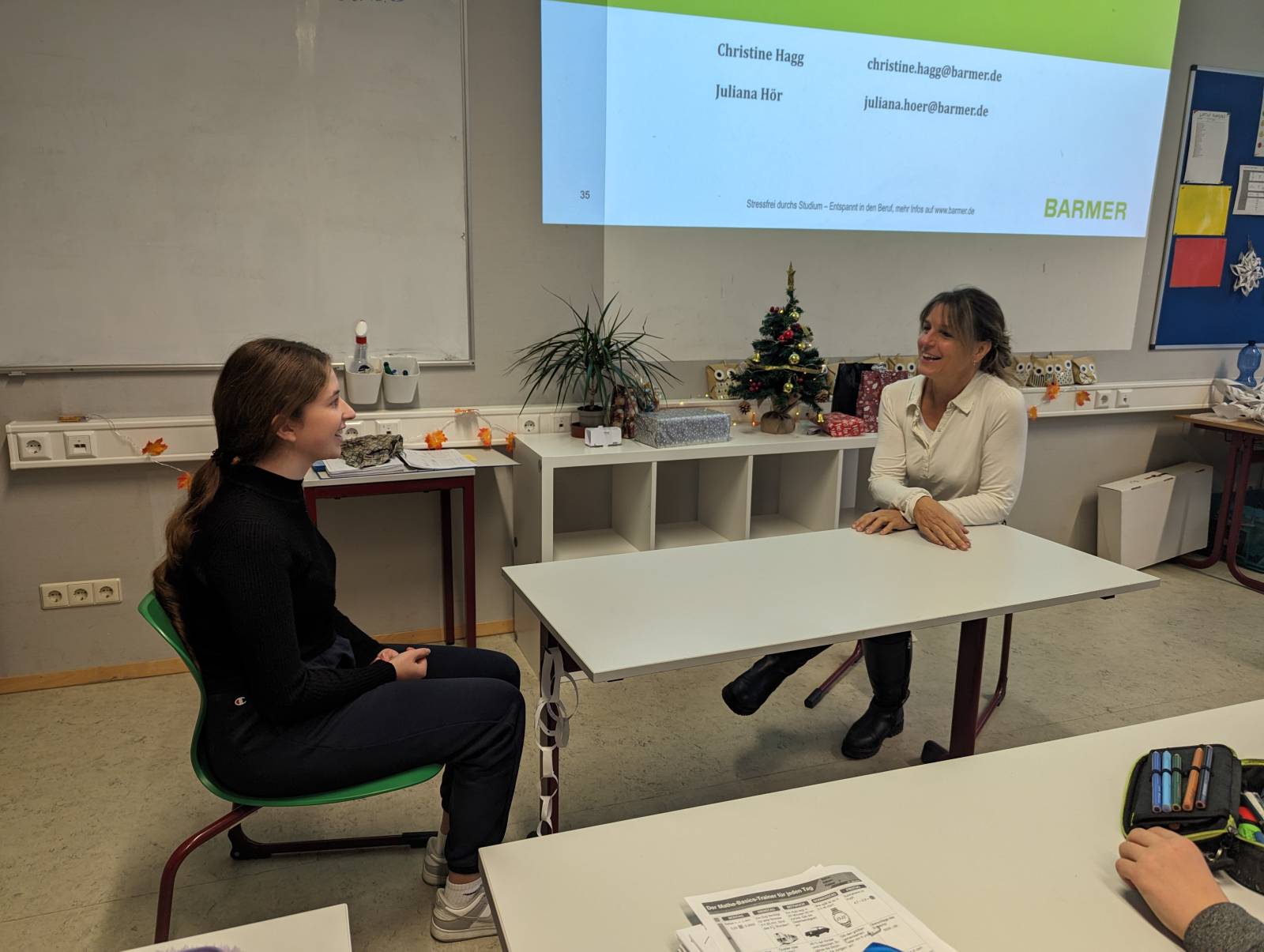 Diese und viele weitere Fragen besprach Christine Hagg von der BARMER auf lebhafte und interessante Art und Weise mit unseren Achtklässlern. Zudem wurden auch die Verhaltens- und Benimmregeln nach Knigge ausführlich begesprochen.