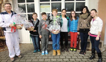 Eine Delegation der Streitschlichterinnen und Streitschlichter hat heute Herrn Edmund Kammerer unseren großen Dank ausgesprochen. Unter der Regie seines Malergeschäfts konnten die Schülerinnen und Schüler in einer gemeinsamen Aktion den Streitschlichterraum neu gestalten. Mit dabei waren die beiden Maler Sven Lahm und Ronny Schreck, die mit viel Geduld und Humor unsere große Gruppe entsprechend anleiteten. Im Zuge der Berufsorientierung wurden die verschiedenen Tätigkeitsfelder des Malerberufs vorgestellt, erklärt und in der praktischen Umsetzung sofort ausgiebig erprobt. Und das Ergebnis kann sich sehen lassen: Feine Grüntöne verleihen der Räumlichkeit nun eine warme und einladende Atmosphäre. In sanften Wellen fällt der Übergang zum weißen Deckenhimmel besonders harmonisch aus. Die Zimmerbeleuchtung ist nun Teil einer blauen Schönwetterwolke, so dass mit ein bisschen Phantasie der Eindruck einer lieblichen Frühlingslandschaft entstehen kann.